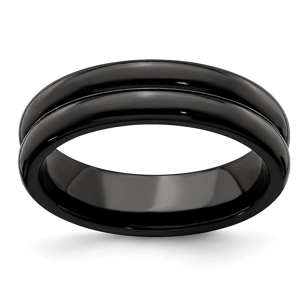 Polished Black Titanium With Grooves 6mm Band Ring for Women and Men - Ring Size: 6 to 13