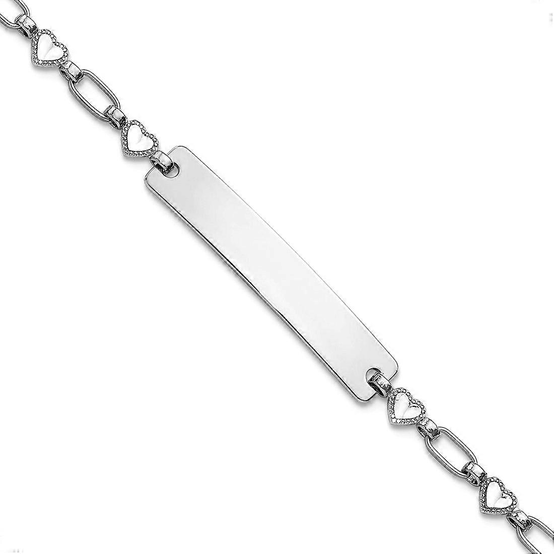 5.5mm 925 Sterling Silver Rhodium Plated Love Hearts ID Bracelet Identification Bracelet - Length: 6.5 to 7.5