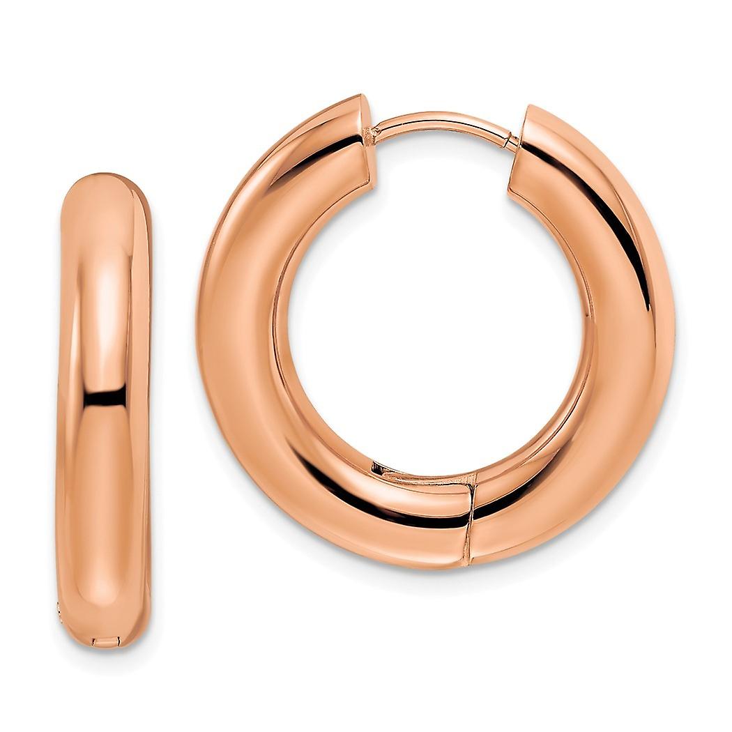 Stainless Steel Polished Rose Ip Plated 5mm Hinged Hoop Earrings 25x25.5mm Wide 5mm Thick Hoop Earring for Women