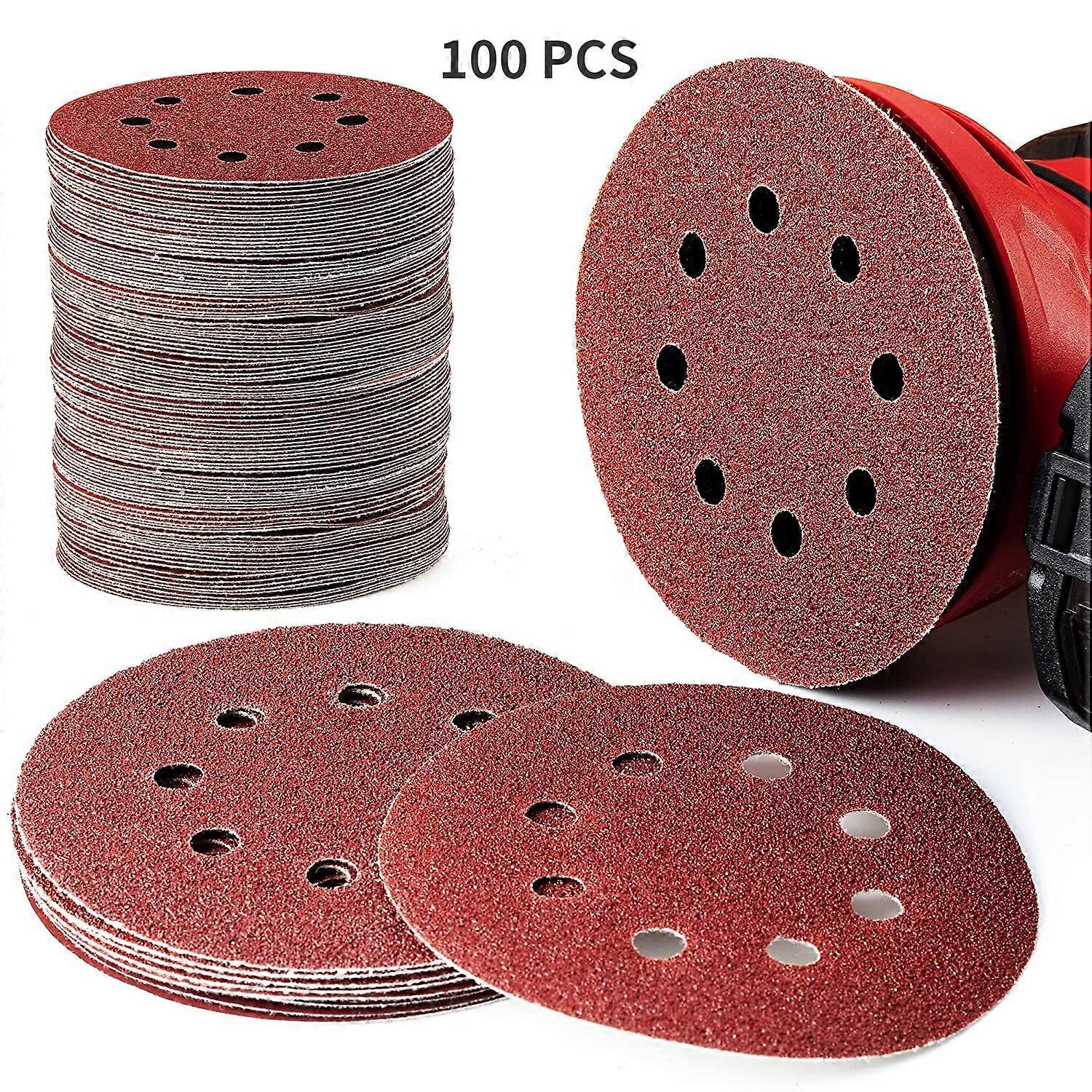 100pcs 5 Inch 8 Hole Sandpaper Sand Paper for Sander 4060801201501802403204006008001000 Grits