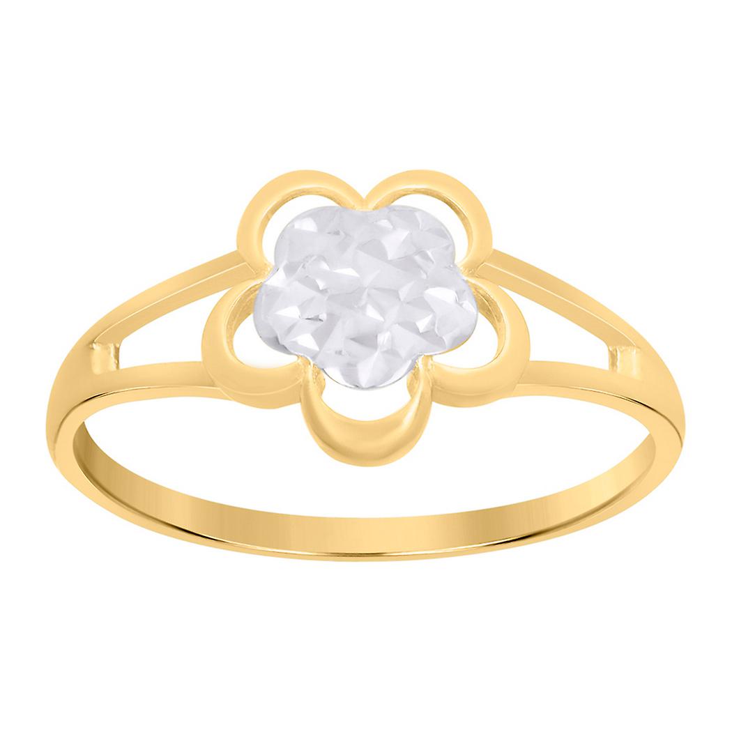 10k Two tone Gold Womens Flower Fashion Ring 9.4mm Long Ring for Women - 1.2 Grams