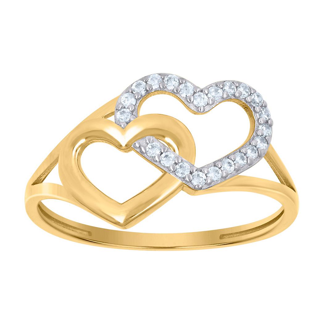 10k Two tone Gold Womens Cubic Zirconia Intertwined Love Heart Ring 11.1mm Long Statement Ring for Women