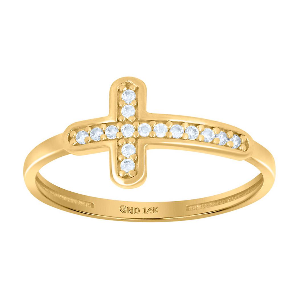 14k Yellow Gold Womens Cubic Zirconia Cross Religious Ring 8.8mm Long Ring for Women - 1.3 Grams