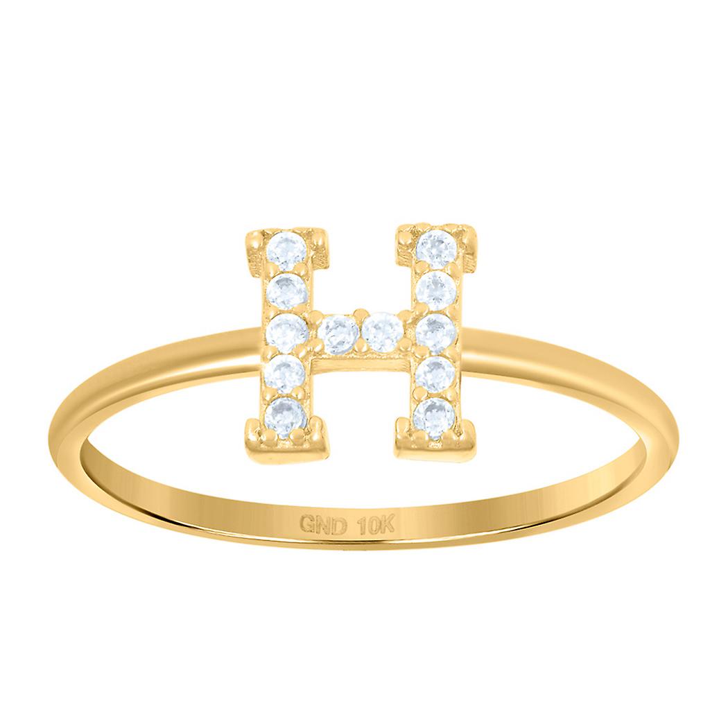 10k Yellow Gold Womens Cubic Zirconia Letter Name Personalized Monogram Initial Alphabet H Ring 1.2mm Wide Ring for Wome