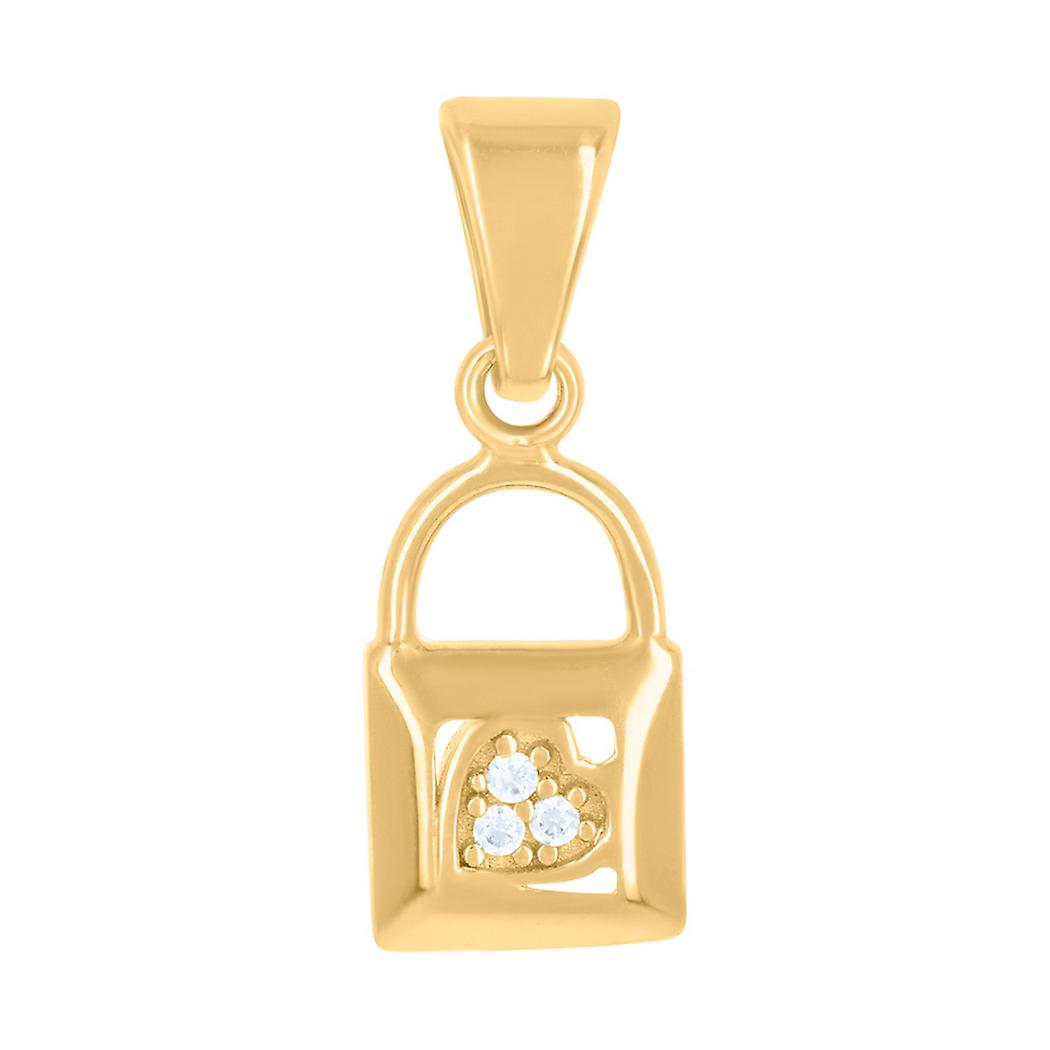 10k Yellow Gold Womens Cubic Zirconia Lock Charm Pendant Necklace 18.3x6.6mm Wide Pendant for Women