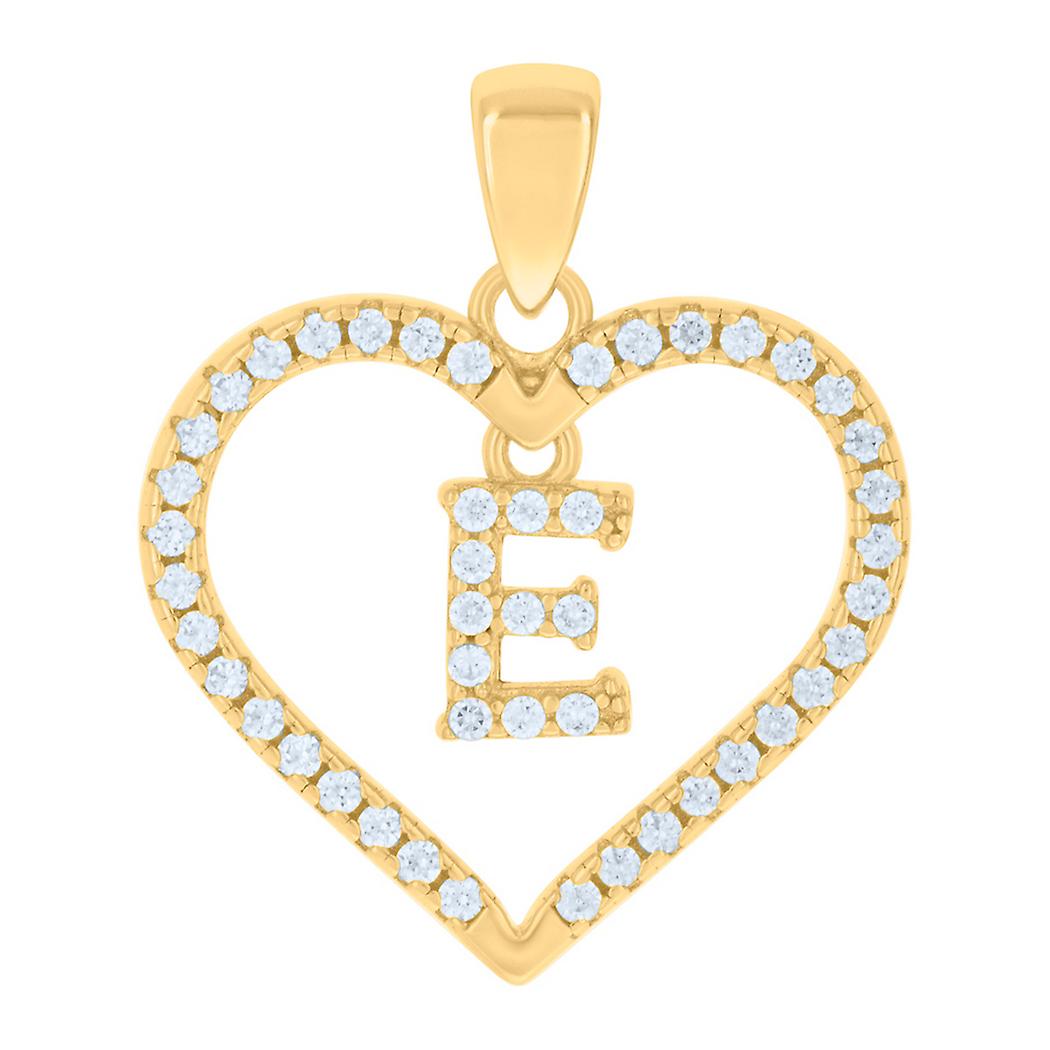 925 Sterling Silver Yellow-tone Womens Cubic Zirconia Letter Name Personalized Monogram Initial Alphabet E Love Heart Ch