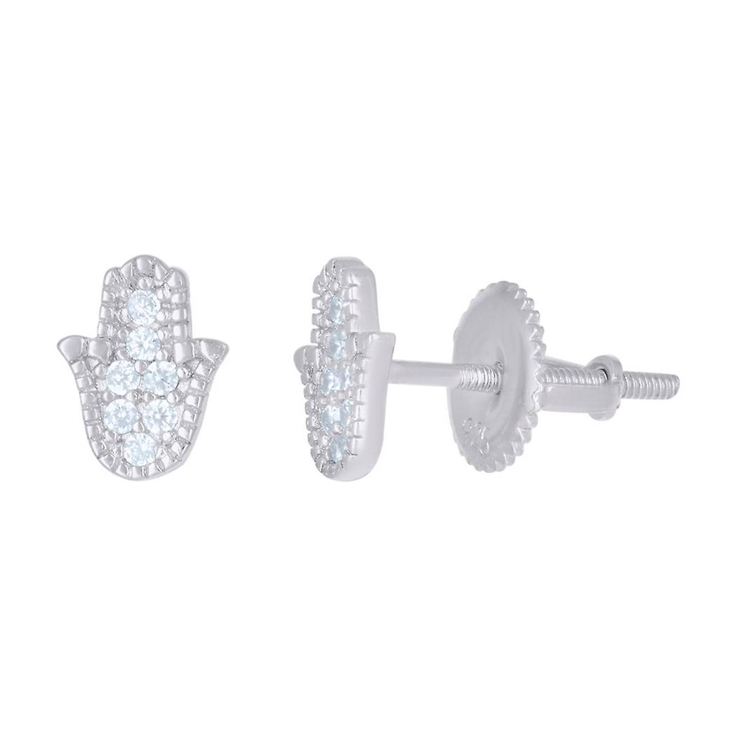 925 Sterling Silver Womens Cubic-zirconia Humsa Religious Stud Earrings - Measures 6.8x5mm Wide - .9 Grams In Sterling Silver - - - [ Care and Handling: zircon ] - Avoid abrasives, rough handling and exposure to excessive light. Clean with warm soapy water and a soft cloth. -