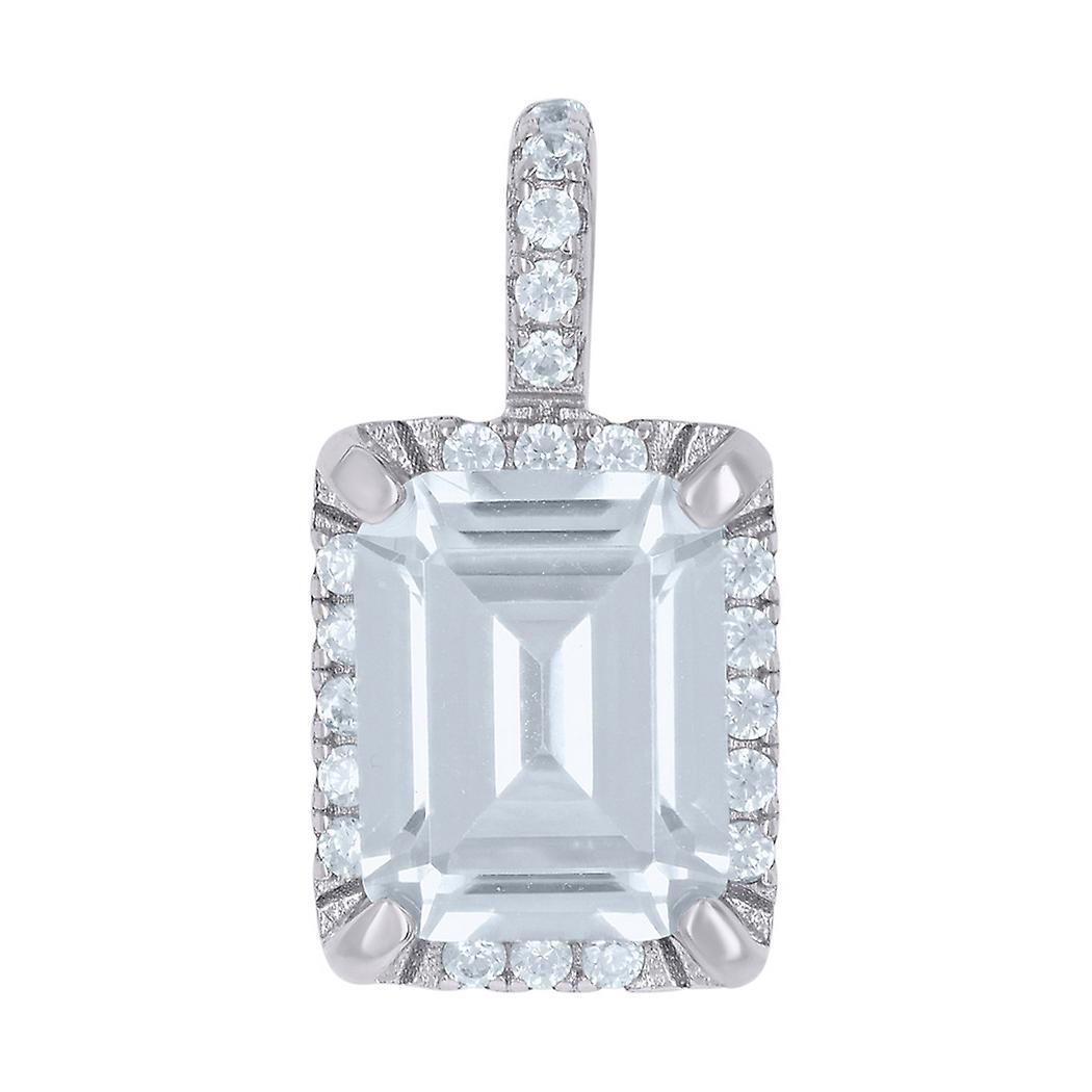 925 Sterling Silver Womens Emerald-Cut Round Cubic Zirconia Fashion Charm Pendant Necklace 17x8.7mm Wide Pendant for Wom