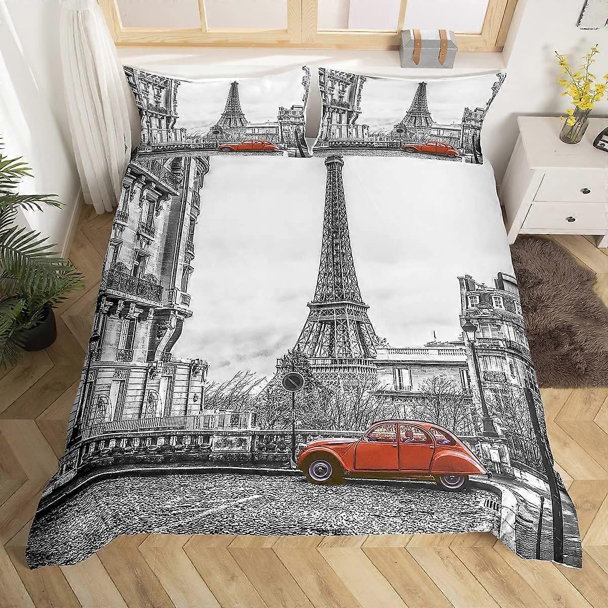 Eiffel Tower Comforter Cover Set Queen Size Paris Tower Bedding Set French Style Bedroom Decor Kids Women Girls Boys, Grey Cityscape Bedspread Cover w