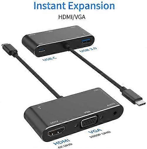 USB Hub Power Strip USB Type-C to HDMI + VGA + USB3.0HUB + PD + 3.5 Audio Docking Station HD Cable for Laptop Black