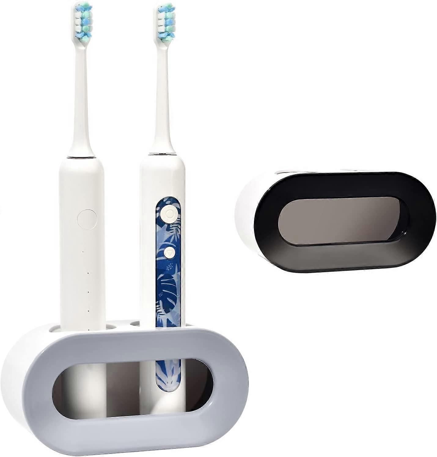 2Pcs Electric Toothbrush Holder,Wall Mounted Double Hole Electric Toothbrush Stand(Blue+gray) (D-583-A)