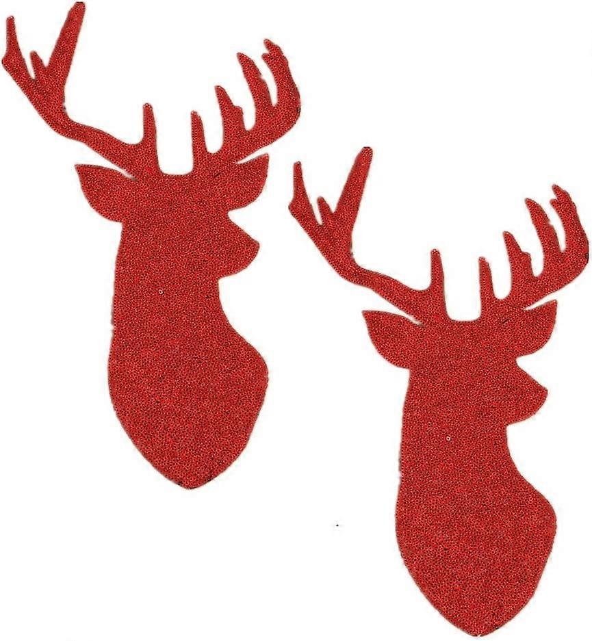 2 Pack Christmas Deer Head Iron on Patches Sew on Embroidered Sequin Appliques (Silver) (D-583-A)