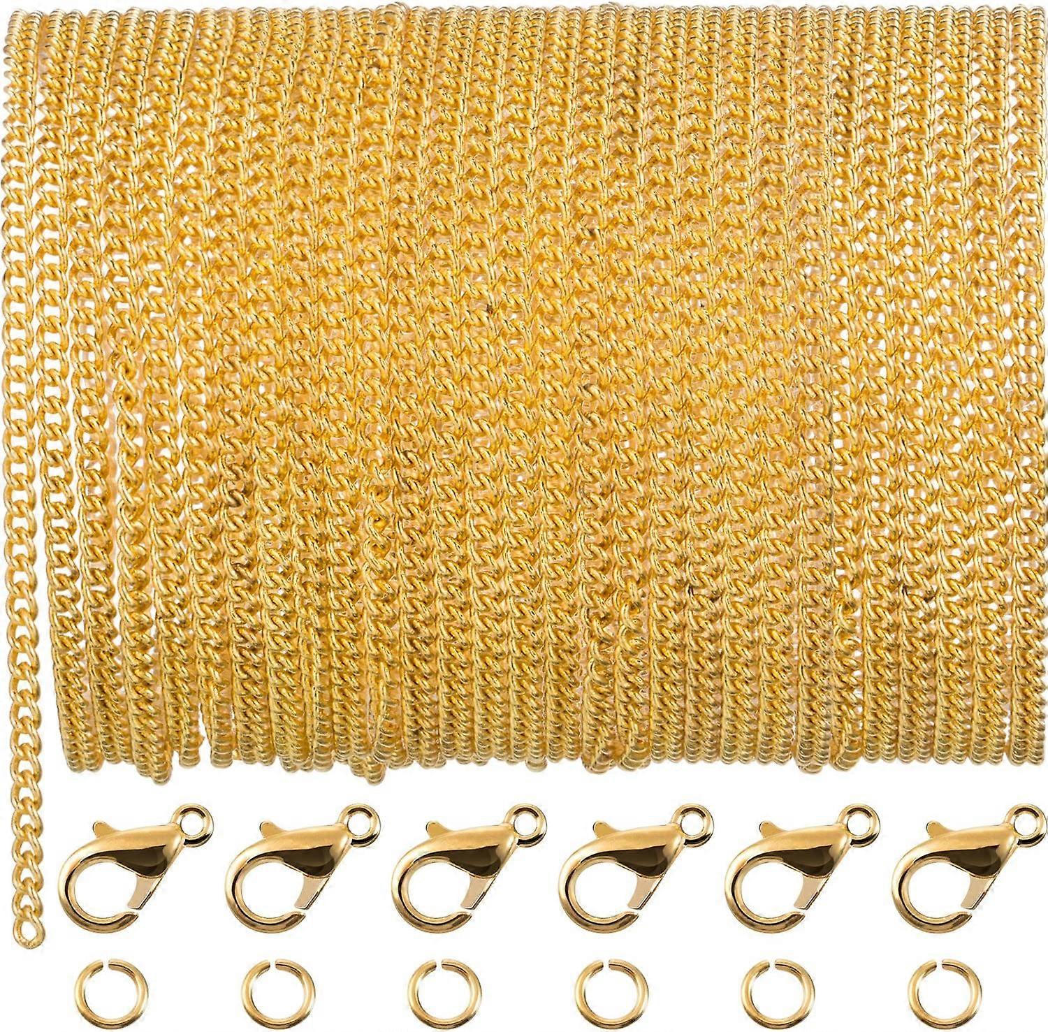 33 Feet Gold Plated Link Chain Necklace with 30 Jump Rings and 20 Lobster Clasps for Men Women Jewelry Chain DIY Crafts (2.5mm) (D-583-A)