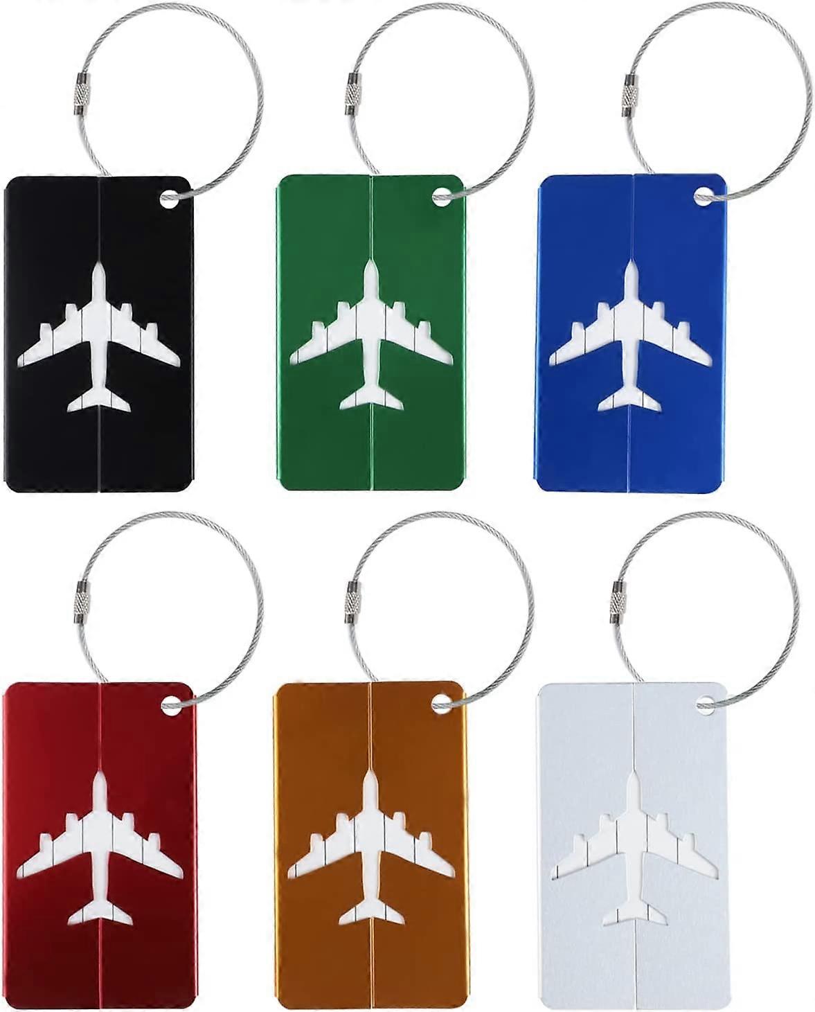 Stainless Steel Aircraft Shape Suitcase Luggage Tag (Random Color) 6pcs (D-583-A)