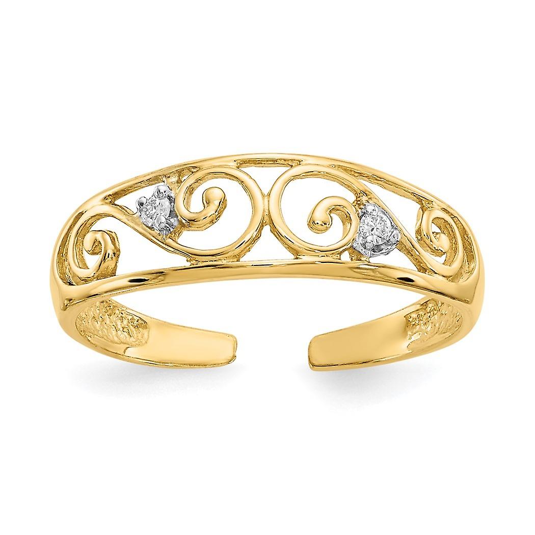 10k Solid Yellow Gold .02ct Diamond Scroll toe ring 1mm Wide toe ring for Women - .6 Grams .02 dwt