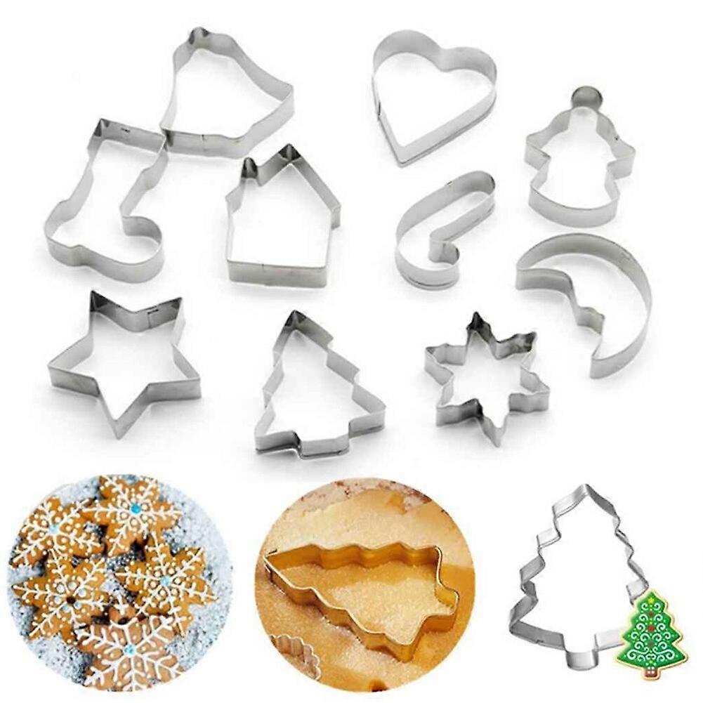 10pcsset Christmas Cookie Cutter Stainless Steel Kitchen Baking Tool DIY Animal Style Xmas Tree Shaped Fondant Bell Cookie Cut