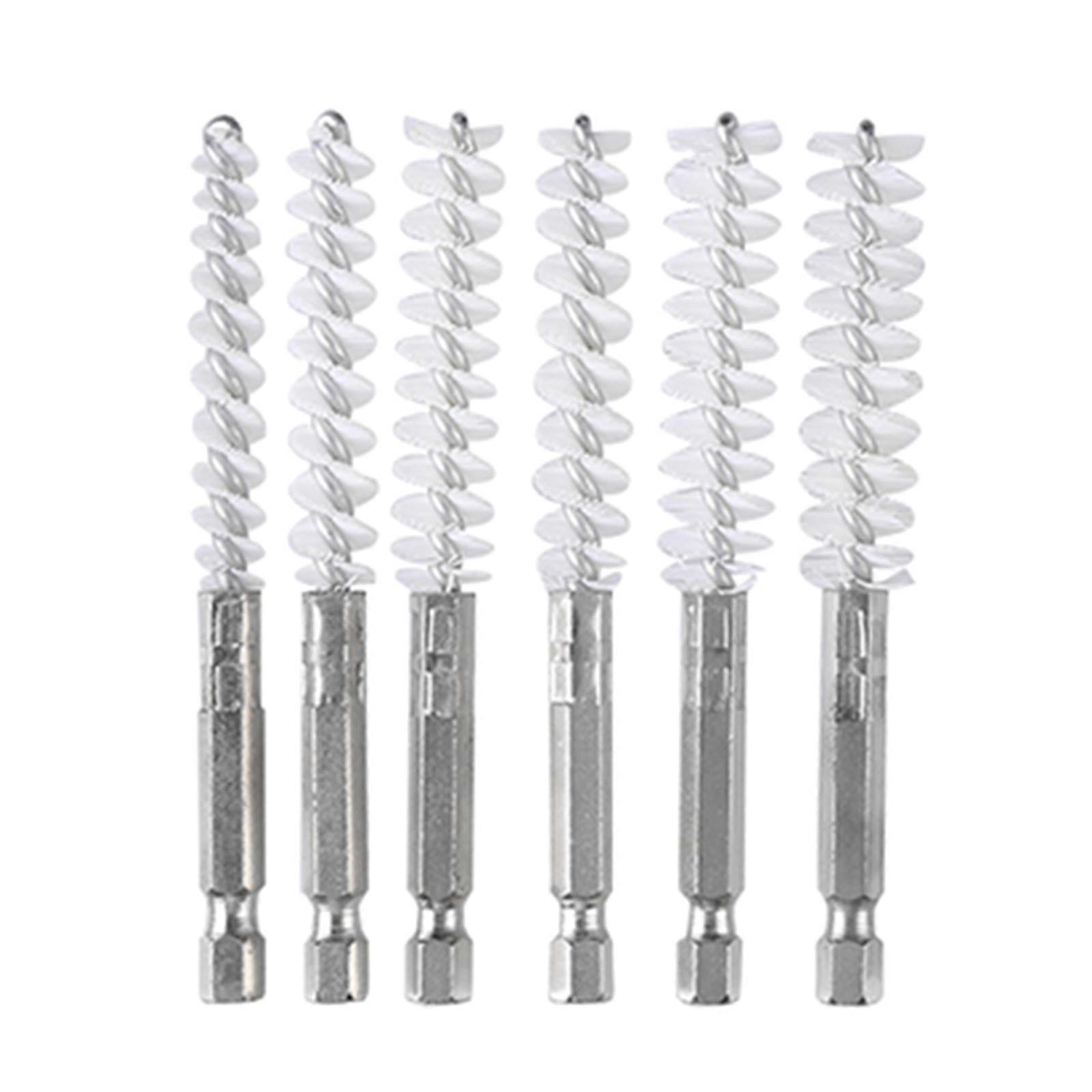 6pcs Stainless Steel Bore Brush Nylon Bristles Twisted Wire Brushes with Hex Shank Handle for Electric Drill Impact