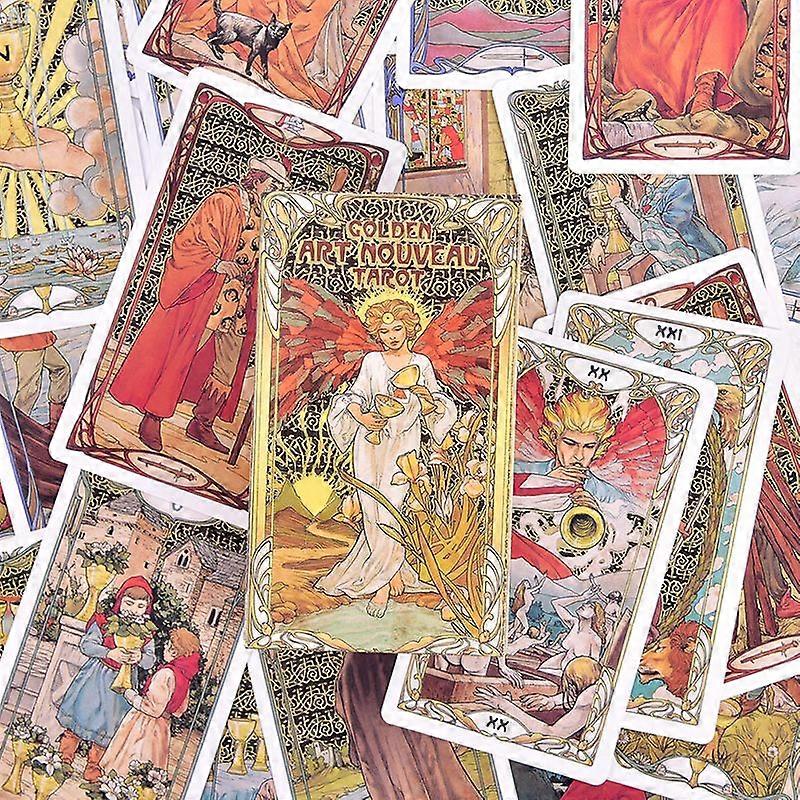 Golden Art Nouveau Tarot Deck 78 Cards for Beginners Classic Art Nouveau Style