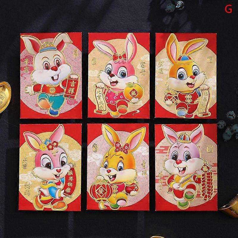 6Pcs 2023 Year Of The Rabbit Spring Festival Cartoon Rabbit Red Packet Gifts