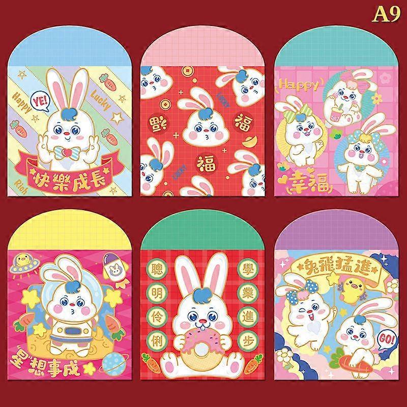 6Pcs 2023 Rabbit Year Cartoon Chinese New Year Red Packet Lucky Red Envelope