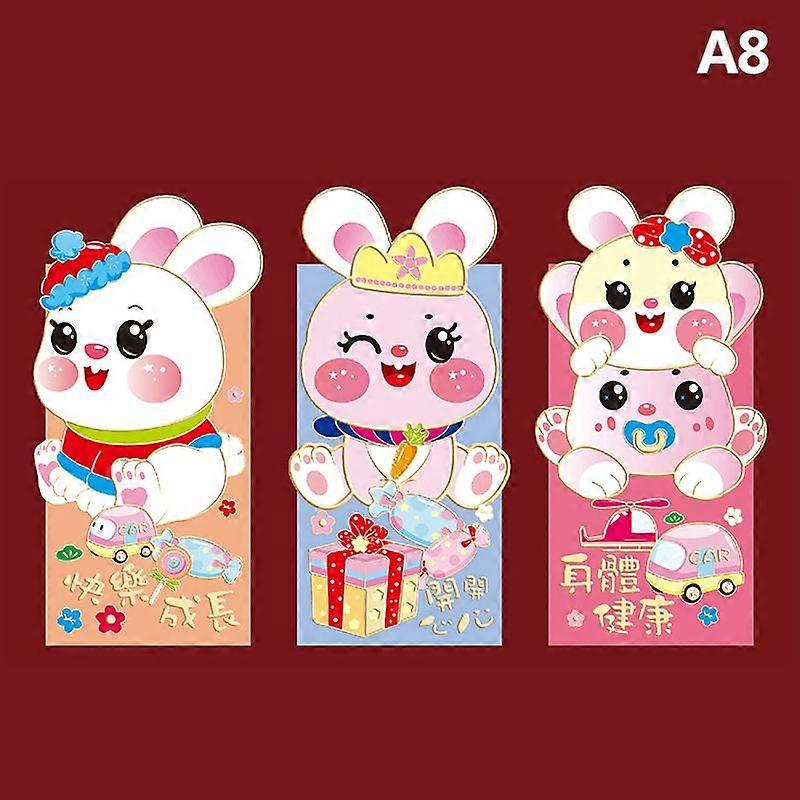 6Pcs Rabbit Year Cartoon Spring Festival Chinese New Year Lucky Red Envelope