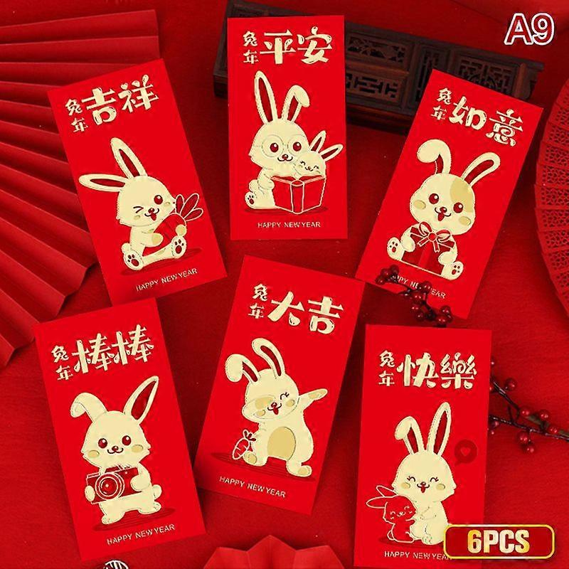6PCS Chinese Rabbit Year Spring Festival Good Wishes Lucky Money Red Envelope
