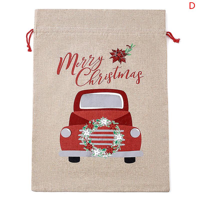 Christmas Candy Gift Big Bag Linen Tote Bags Lattice Side Drawstring Pocket