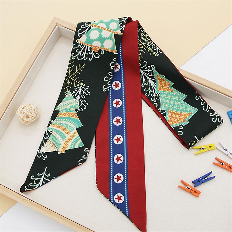 Christmas Fashion Print Silk Scarf Women Hair Band Narrow Ribbon Bow Neckerchief