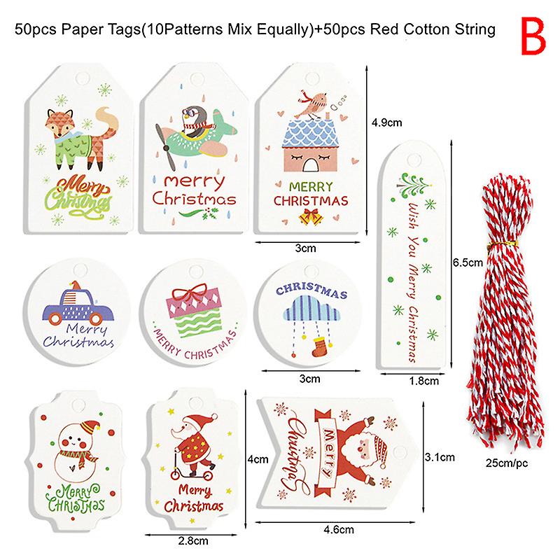 50pcs/set Merry Christmas Tags Kraft Paper Card Gift Label Tag Diy Hang Tags