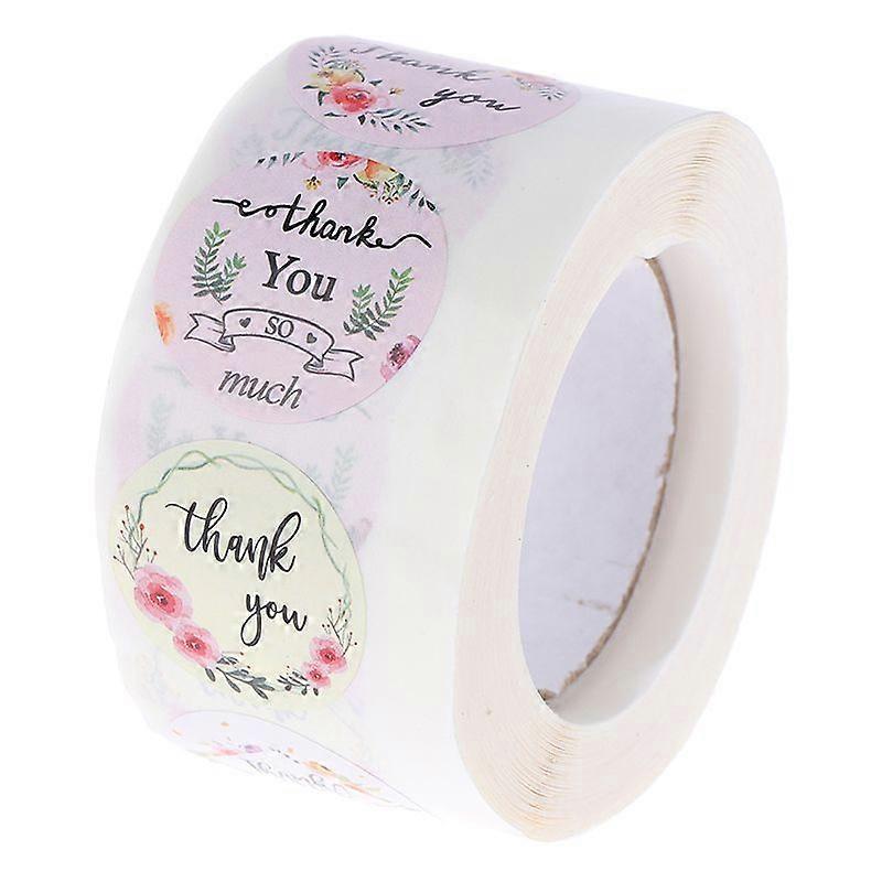 500Pcs/Roll Round Floral Thank You Stickers for Package Seal Labels