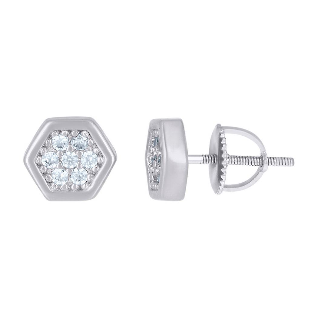 925 Sterling Silver Womens Cubic Zirconia Octagon Fashion Stud Earrings 4.6x5.2mm Wide Stud Earring for Women
