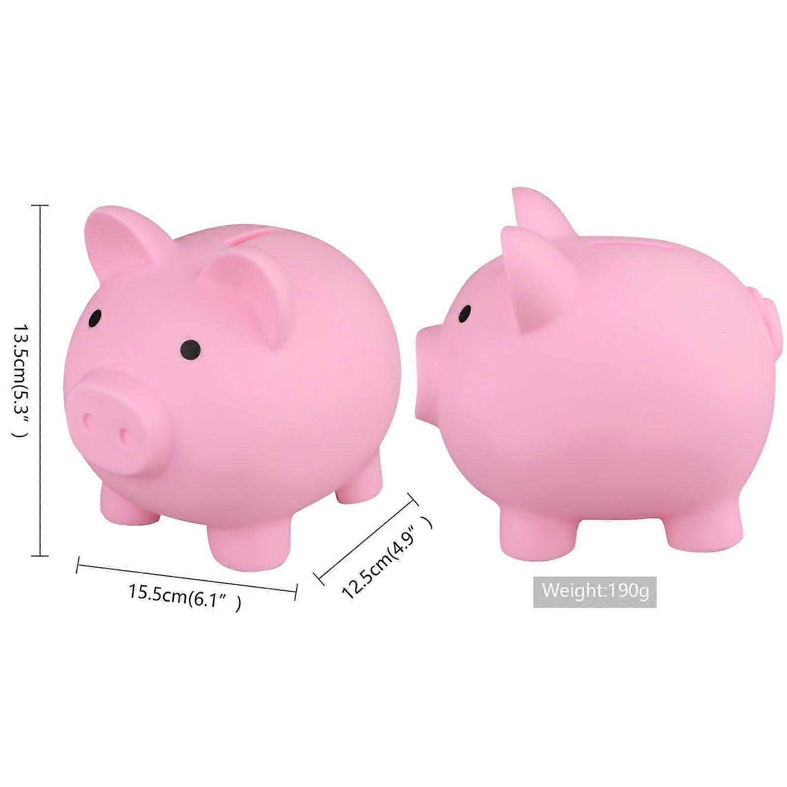 ??【Package Include】You will get a very cute piggy bank. We provide 2 colors for you to choose, style1 is blue, style 2 is pink, you can choose according to your preferences. Our piggy bank is larger than the general ones on the market (4.72 x 5.9 x 5.31 inch) and can serve you for a long time. ??【Robust and Durable】 The piggy bank is made of high-quality vinyl material, strong and durable, odorless, safe and environmentally friendly, feels good and not fragile, you don't need to worry about damage if your child falls to the ground. ??【Cute Design】The piggy bank has a cute piggy shape and different bright colors. The exquisite design makes the piggy bank look vivid and attractive. Children will like to put money in this cute piggy bank, which will also help them develop good habit of saving money. ??【Proper Size】The cute piggy bank is of the right size, and the deposit port is large enough for any coin such as pennies, nickel coins, dimes, quarter coins and dollar coins. It can not only be used as a piggy bank, but also beautifully decorated for your home. ??【Perfect Gift】The cute pig image makes this piggy bank a sweet gift for boys, girls, children and even adults on birthdays, new years, anniversaries and so on. An exquisite piggy bank as a gift for children to help them manage their pocket money and cultivate financial thinking.