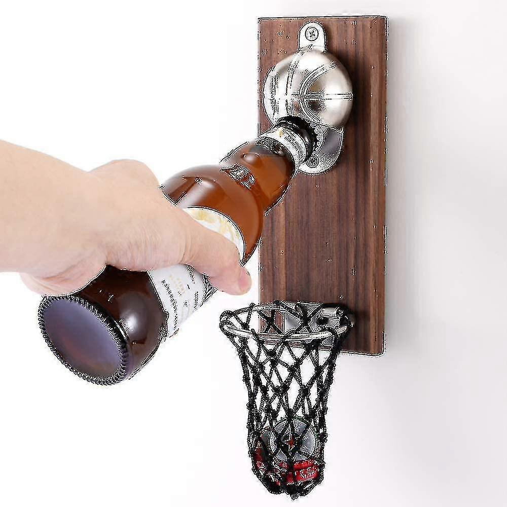 Wall Bottle Opener With Basketball Hoop Magnetic Basketball Bottle Opener, Wooden Wall Mounted With Collector