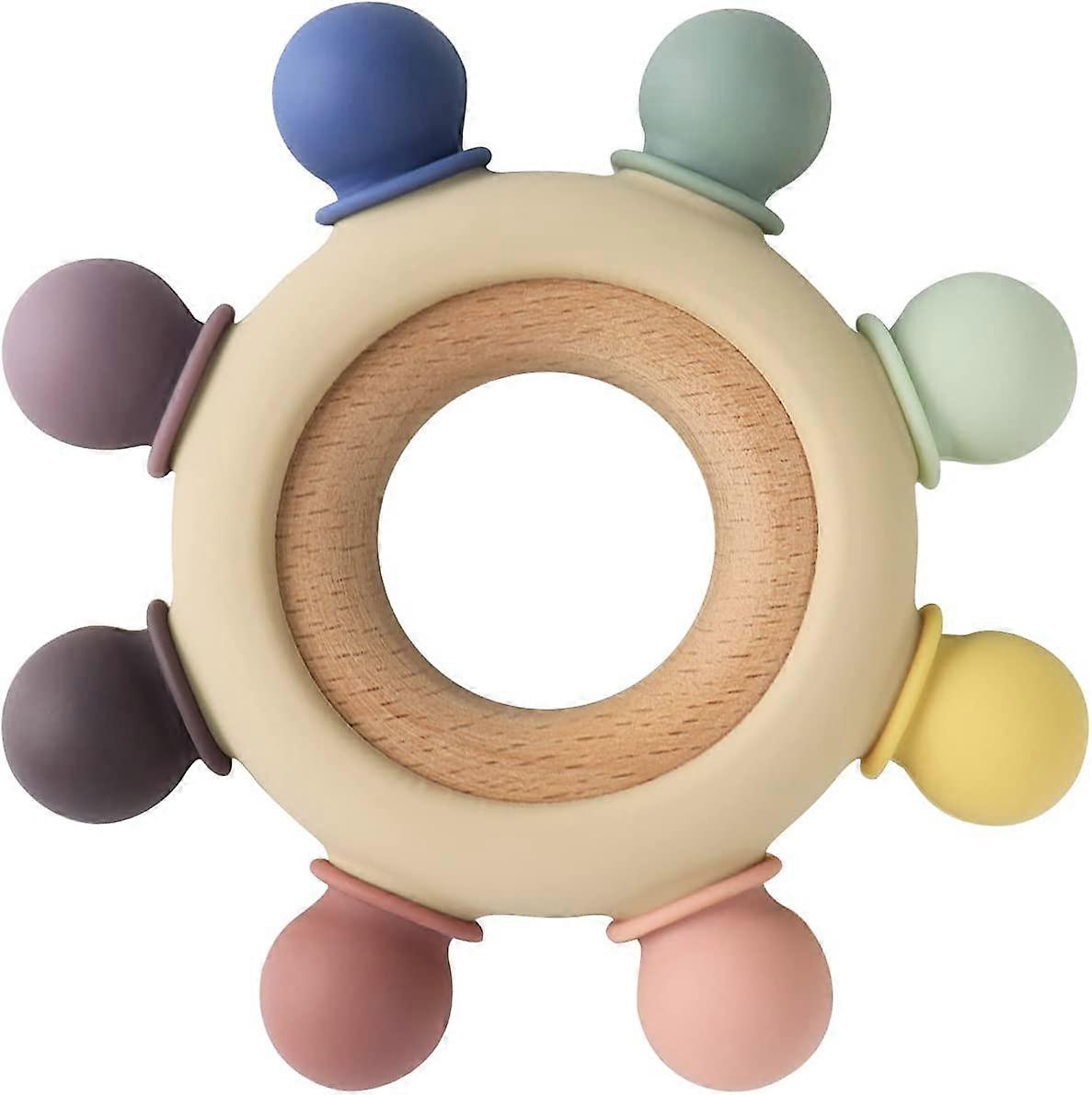 Anneau de dentition en silicone pour dents de lait Gouvernail en silicone sans BPA avec anneau en bois pour apaiser les gencives de bb
