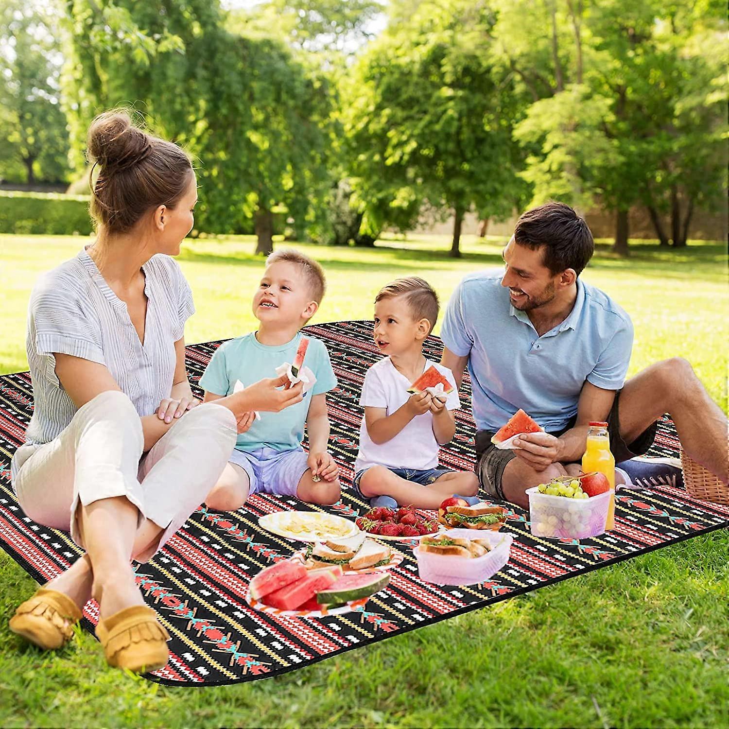 Modle Unique - Notre motif de couverture de pique-nique a un style ethnique qui a l'air chic.C'est un motif adorable qui rendra vos amis envieux.Les couleurs sont vives et peuvent gayer votre environnement. Extra Large-Dimensions dplies : 200x200 cm, notre Tapis de Plage est suffisamment grande pour accueillir facilement 6 8 personnes.Il peut tre pli et enroul trs rapidement et ne prend pas trop de place dans votre sac dos. Matriaux Solides et Durables - Notre Couverture de Plage a deux couches,la couche suprieure est en tissu polyester Oxford 900D,la couche infrieure est en PVC,doux,mince,tanche,respectueux de la peau,Rsistant aux dchirures,parfait pour le pique-nique. Sans Sable et Facile Nettoyer -Notre Couverture de Plage XXL a une couche infrieure en PVC impermable,il est tanche l'eau et au sable, ce qui peut protger la couverture de l'humidit et de l'herbe mouille,vous faire profiter d'une journe confortable et sche.Vous pouvez nettoyer la surface avec un chiffon humide ou une brosse vtements.Ne pas laver en machine. Tapis de pique-nique Multifonctionnel -Notre tapis de plage impermable n'est pas seulement adapte pour le pique-nique, le camping,faire de la pche,plage,randonne,Festival de musique,barbecues ou autres activits de plein air,mais aussi pour les tapis de maison,tapis de plage,tapis de jeu pour enfants ou bain de soleil.