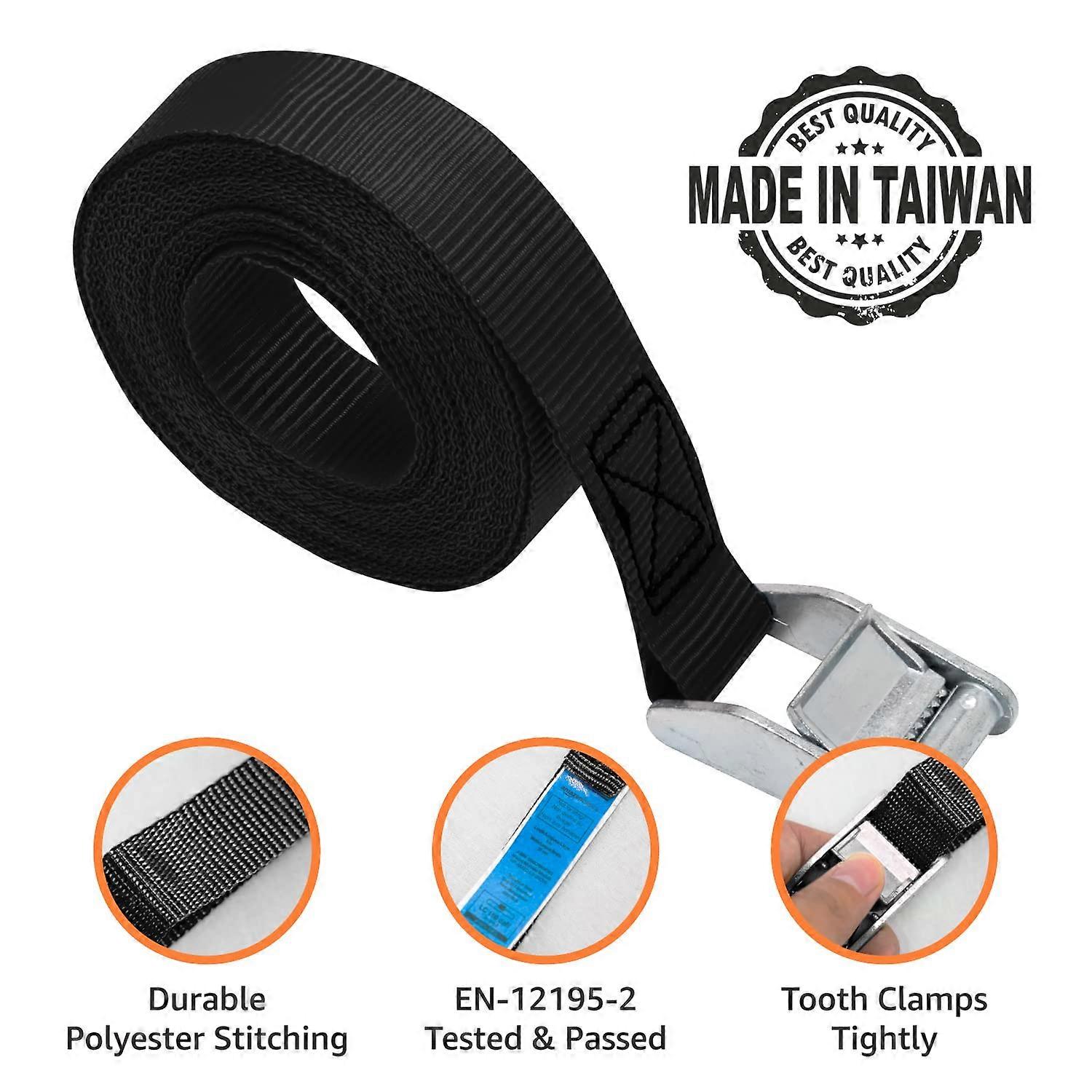 Jeu de sangles d'arrimage, longueur 3 m, largeur 25 mm, capacit d'arrimage 150 kg, selon la norme DIN EN 12195-2 - noir