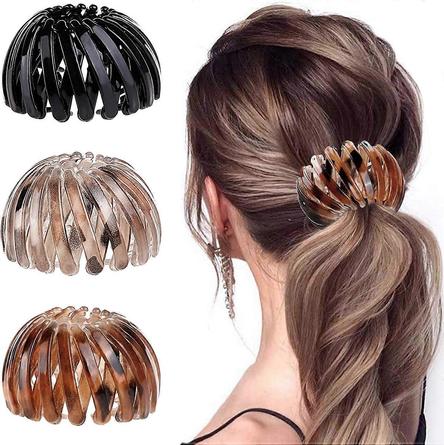 Lot de 3 serre-tte nid d'oiseau pince cheveux automatique attache queue de cheval pinces cheveux rtractables pour femmes filles