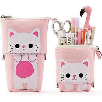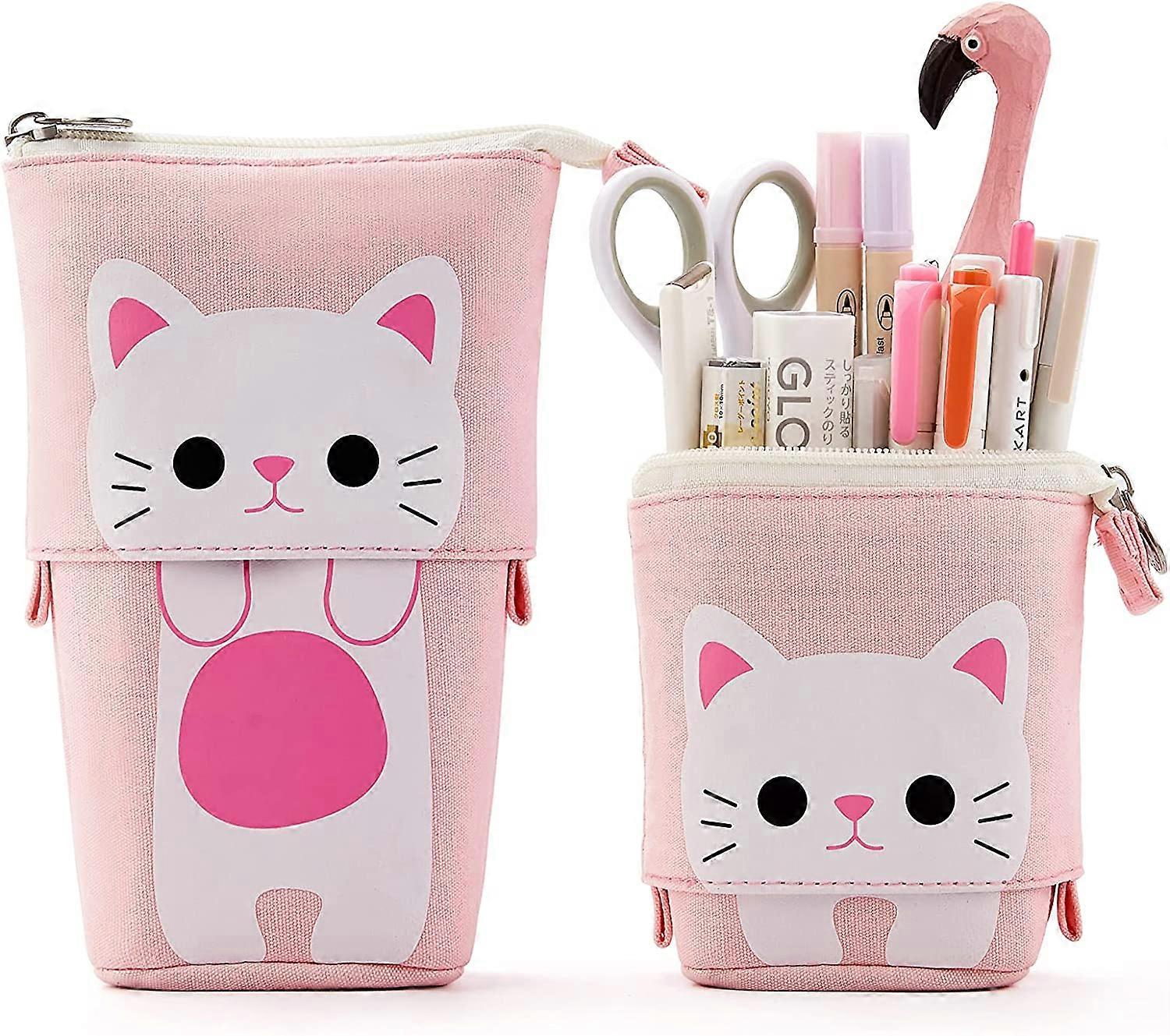 Chat Trousse Telescopique pour Enseignants et Etudiants, Trousses Devient Pot a Crayon pour Enfant et Fille, Fourniture Scolaire Kawaii