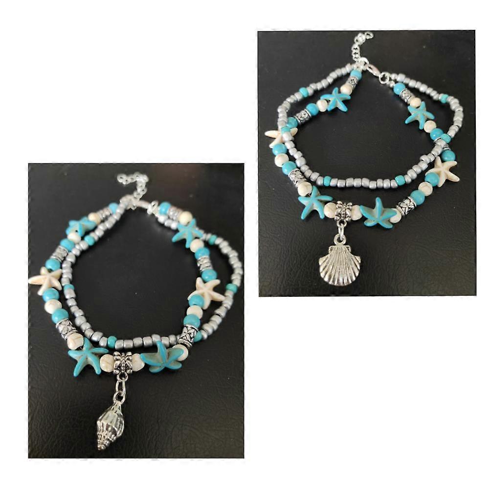 2pcs Foot Ornaments Turtle Anklet Starfish Seashell Pendant Yoga Beach Couple Set Foot Ornaments,C