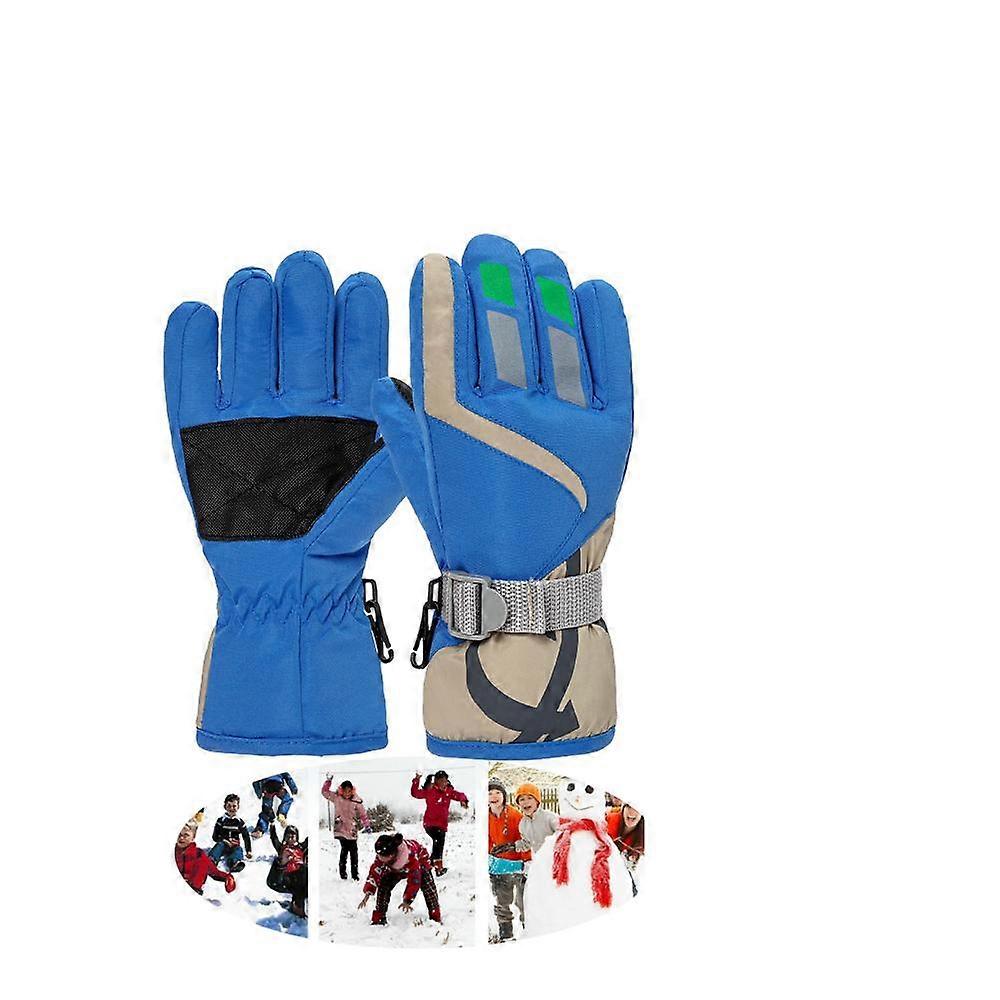 Children's ski gloves in winter Cartoon outdoor windproof plush warm cute boys' and girls' gloves blue