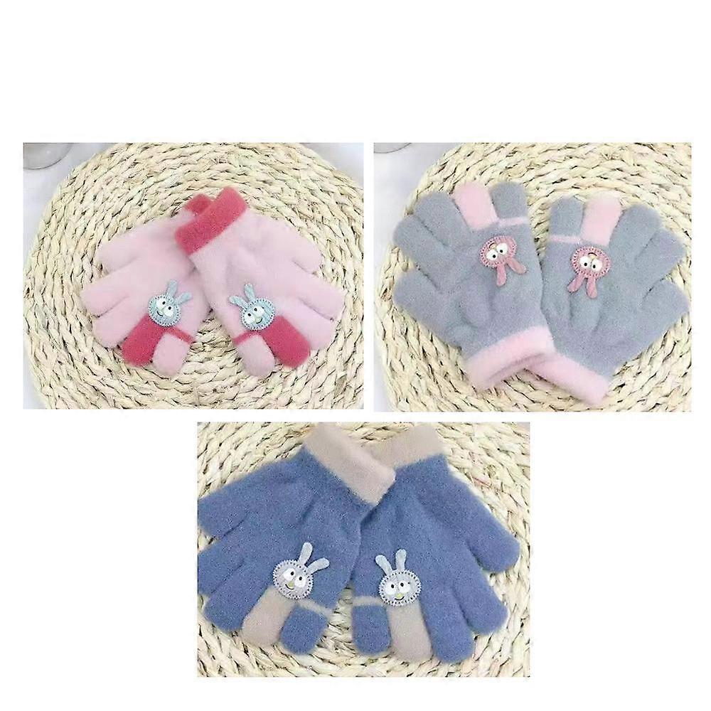 3 Pairs Cartoon Gloves for 4-12 Years Old Kids B