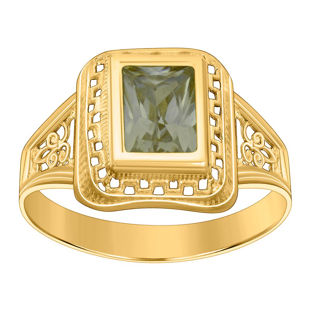 10k Yellow Gold Womens Green Emerald-Cut Cubic Zirconia August Ring 12.3mm Wide Ring for Women