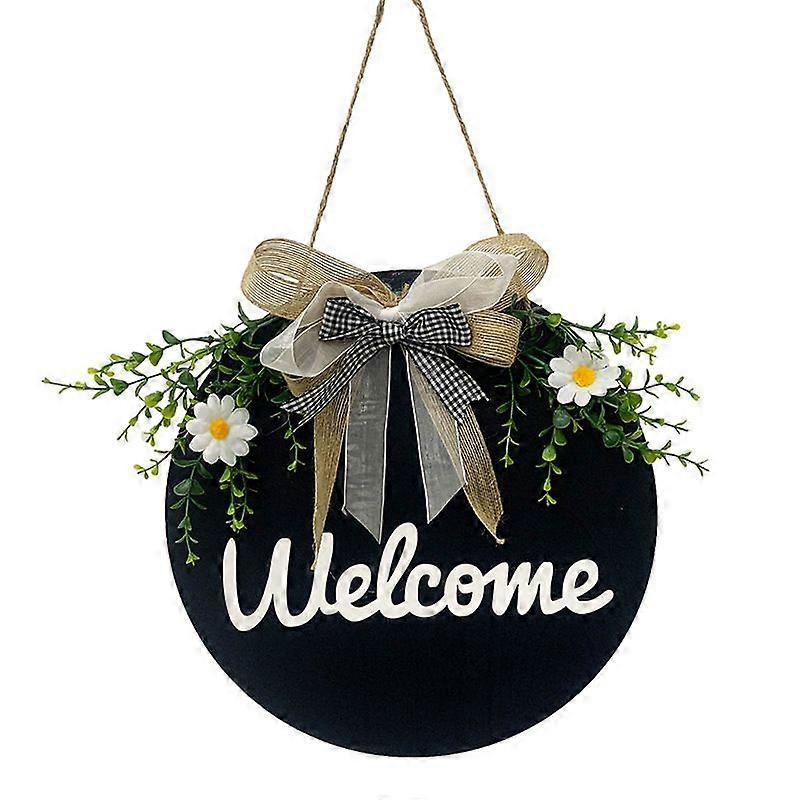 Welcome Sign for Front Door Wooden Outdoor Porch Decor Farmhouse Sign for Spring Daisy Welcome Wreaths Round Welcome Door Sign Hanging with a Hook for