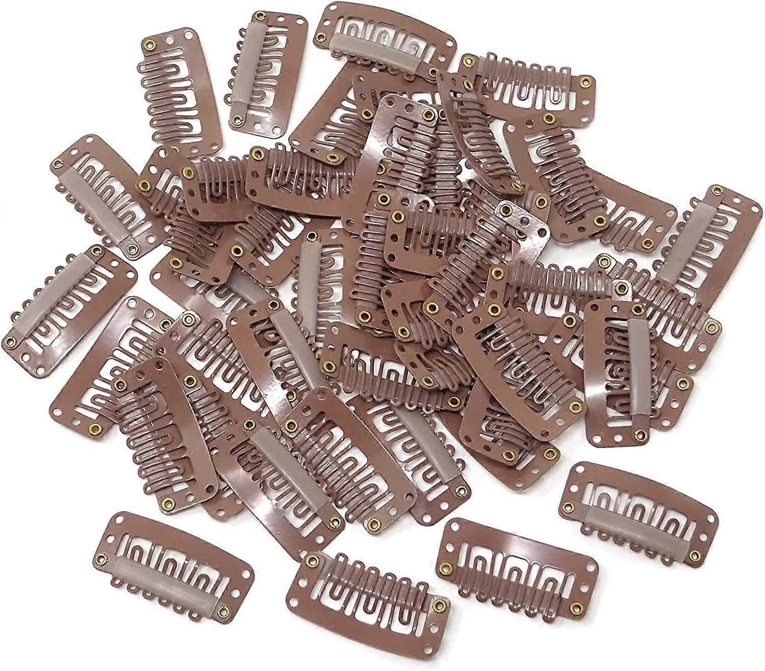 Large quantitytotally 20 pieces hair extension clips are provided, enough quantity for your demand, meet your various purpose. Sturdy materialthe hair wig clip is made of quality rubber and stainless steel, durable and safe to use, soft rubber make it comfortable to wear, can be applied for a long time. Safe designOur Metal Snap Clips have a u shape design with 6 teeth, ensures harmless to your scalp, silicone bar can protect your hair and scale stay away from drag and injury, and the little holes provide convenience for linking or sewing the wig. Functional clipsOur Metal Snap Clips great for wigs, hair weaves, etc., these snap-comb clips can help you to finish your DIY hair extension, set and fit your wigs, hair extensions and hairpiece easily. Size and coloreach clip measures 3.3 x 1.5 cm/ 1.3 x 0.6 inches, proper size for hair extension, suitable for most wigs. Functional clips: Great for wigs, hair weaves, etc., these hair extension clips can help you to finish your DIY hair extension, set and fit your wigs, hair extensions and hairpiece easily. Sturdy material: The hair clips for wigs is made of quality rubber and stainless steel, durable and safe to use, soft rubber make it comfortable to wear, can be applied for a long time. Specifications: Material: rubber and stainless steel Color: brown Size: 3.3 x 1.5 cm/ 1.3 x 0.6 inches Quantity: 20pieces