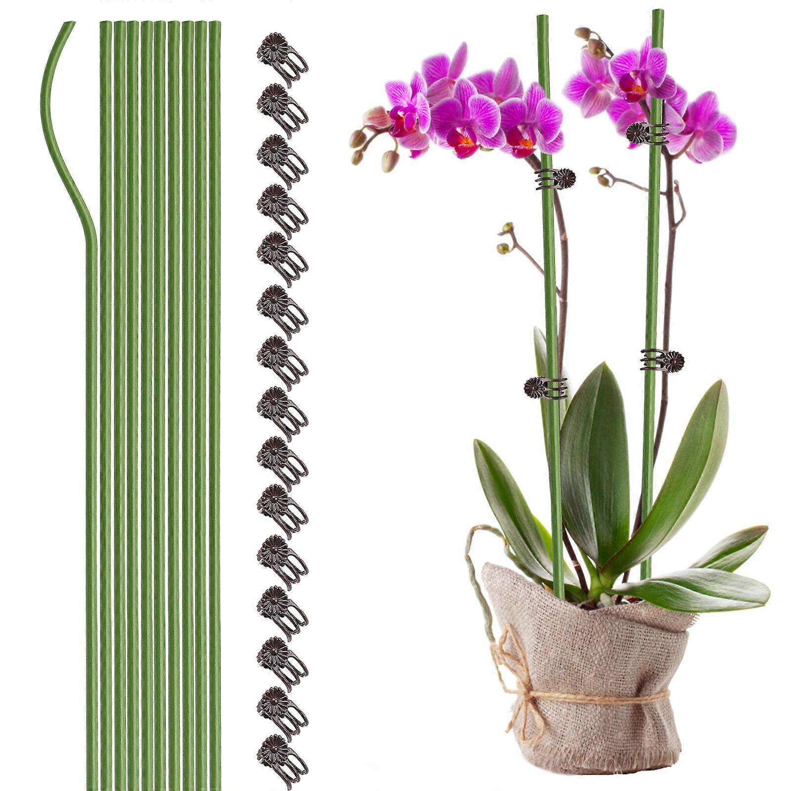 10-PCs 24" Bendable Plastic Coated Metal Steel Garden Plant Support Stakes Sticks for Potted House Plants Indoor, Orchid Flower Stakes