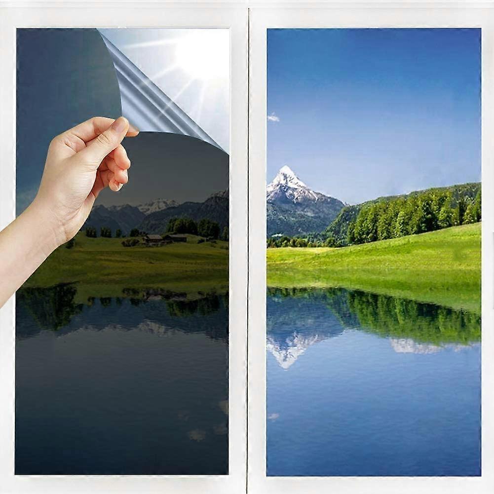 Dww-Film Mirror One-Way Window(40*200cm, Black-Silver) Heat-resistant, Anti-glare, Temperature control, Privacy protectionReflective Window Film for H