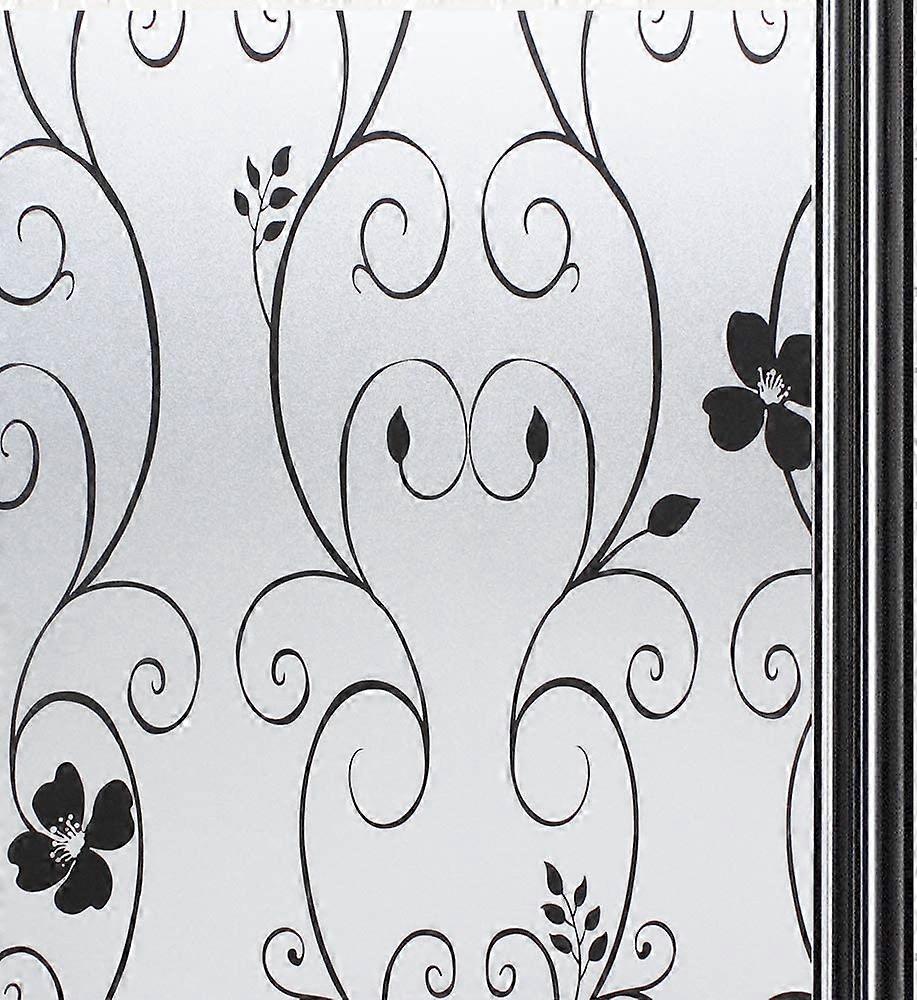 Dww-Adhesive Privacy Window FilmAnti-UV 44.3 x 200 cm - Black Flower - Window Film for Privacy Screens, Electrostatic Window Film, Opaque Window Film,