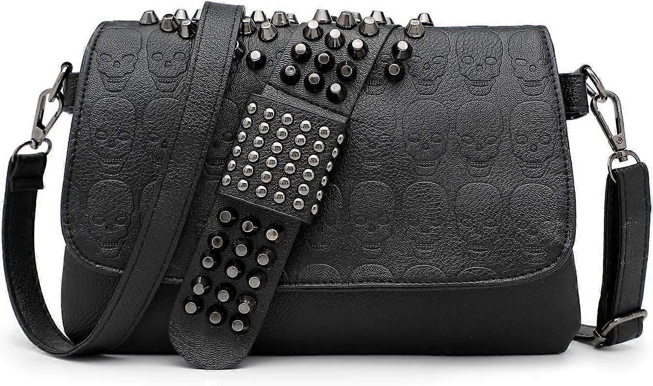 XIANRENGE Gothic Skull Rivet Studded Crossbody Bag for Women Ladies PU Leather Messenger Shoulder bag Wristband Bag Wallet Purse