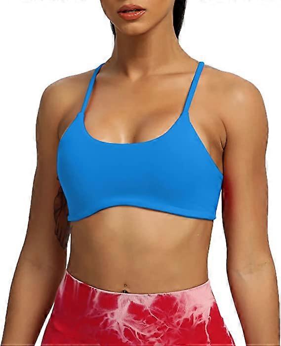 XIANRENGE Women's Workout Sports Bras Fitness Backless Padded Ivy Low Impact Bra Yoga Crop Tank Top, Blue