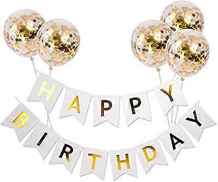 White decorative birthday banner, happy birthday balloons, birthday decorations, and 5 confetti balloons, happy birthday banner for girls and boys, he